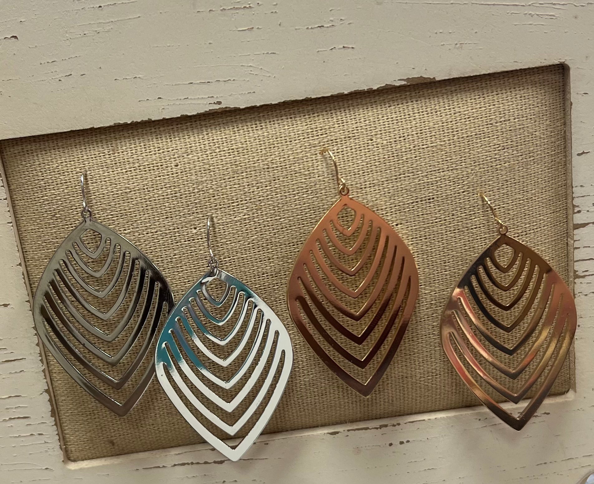 These elegant Cutout Leaf Drop Earrings make a subtle statement of sophistication and taste. A beautiful adornment for any occasion, they offer subtle yet noticeable style along with lasting quality.