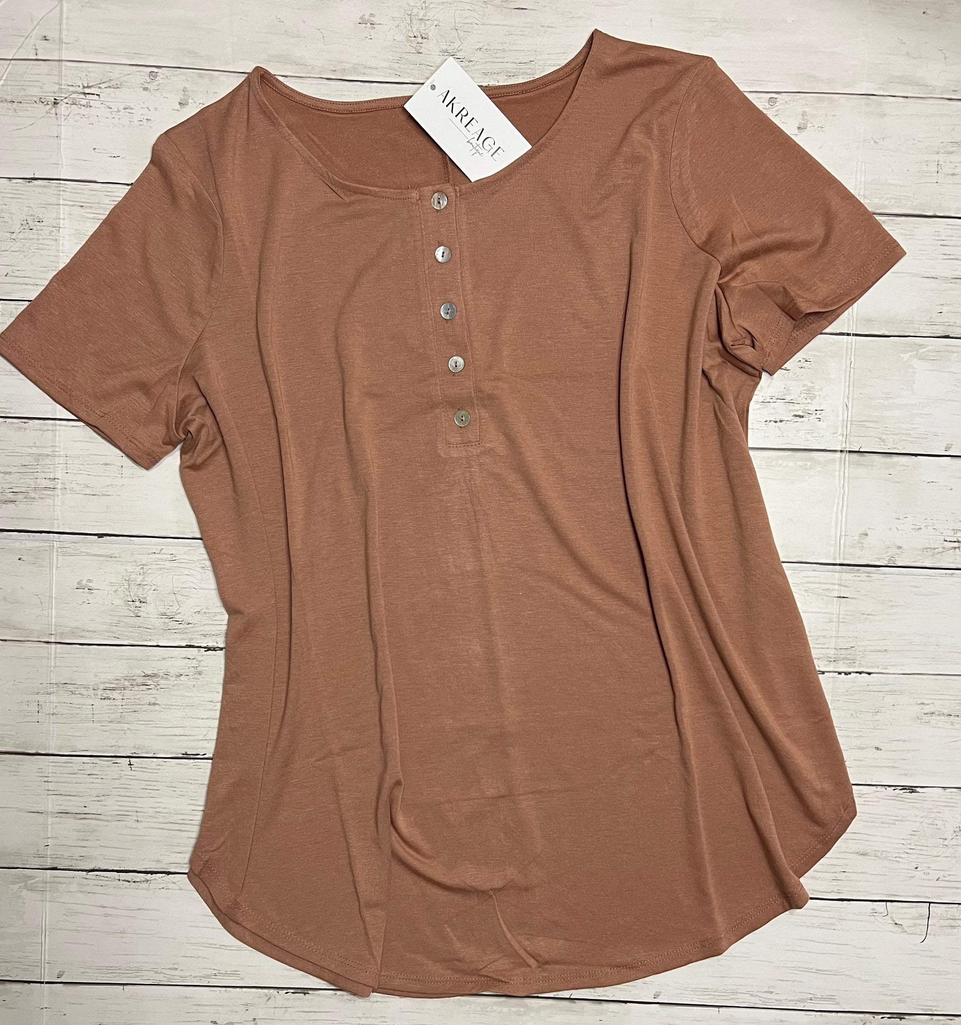 There is nothing quite like The Alana Short Sleeve Dolphin Hem Top, exquisitely crafted from a luxe fabric blend for maximum comfort and style. An elegant button closure and graceful dolphin hemline complete the look, making this the perfect top for any occasion.