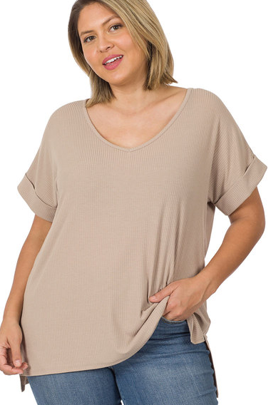 Introducing The Daphne Ribbed V-Neck Top, a timeless piece crafted from the finest ribbed fabric. Featuring a flattering v-neck and hi-low hem, this chic short-sleeved top offers an elegant and sophisticated look for any occasion. With an exclusive, tailored design, The Daphne will elevate your wardrobe with effortless sophistication.