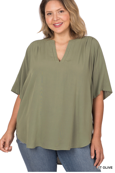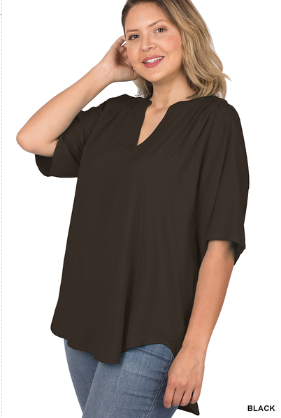 The Hannah is a plus sized short sleeve Top offers luxury comfort without sacrificing style. Made of 100% rayon for an ultra-soft feel, this classic short sleeve shirt features a split neck detail to elevate the look. Perfect for any occasion, you’ll look and feel great.