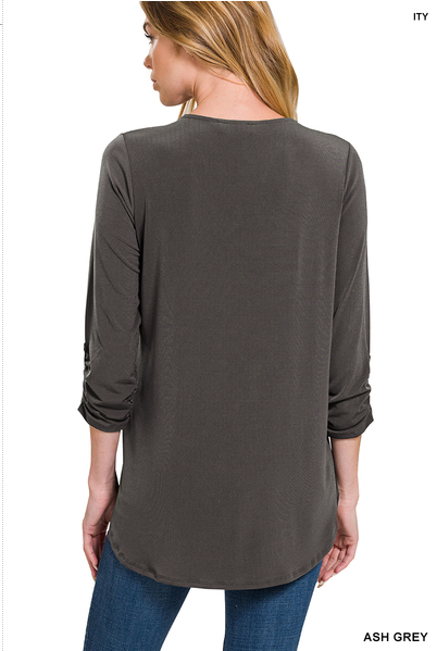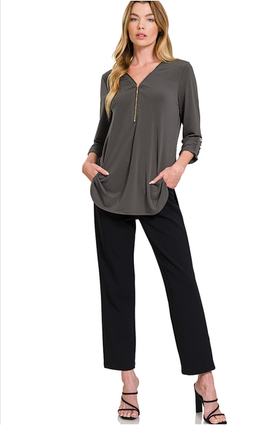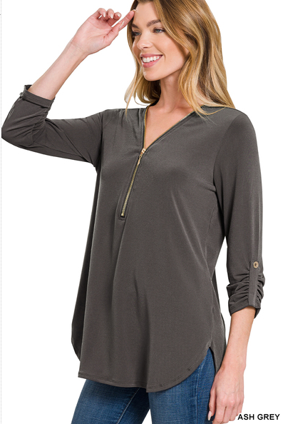 The Rosa ITY Front Zip 3/4 Sleeve Top