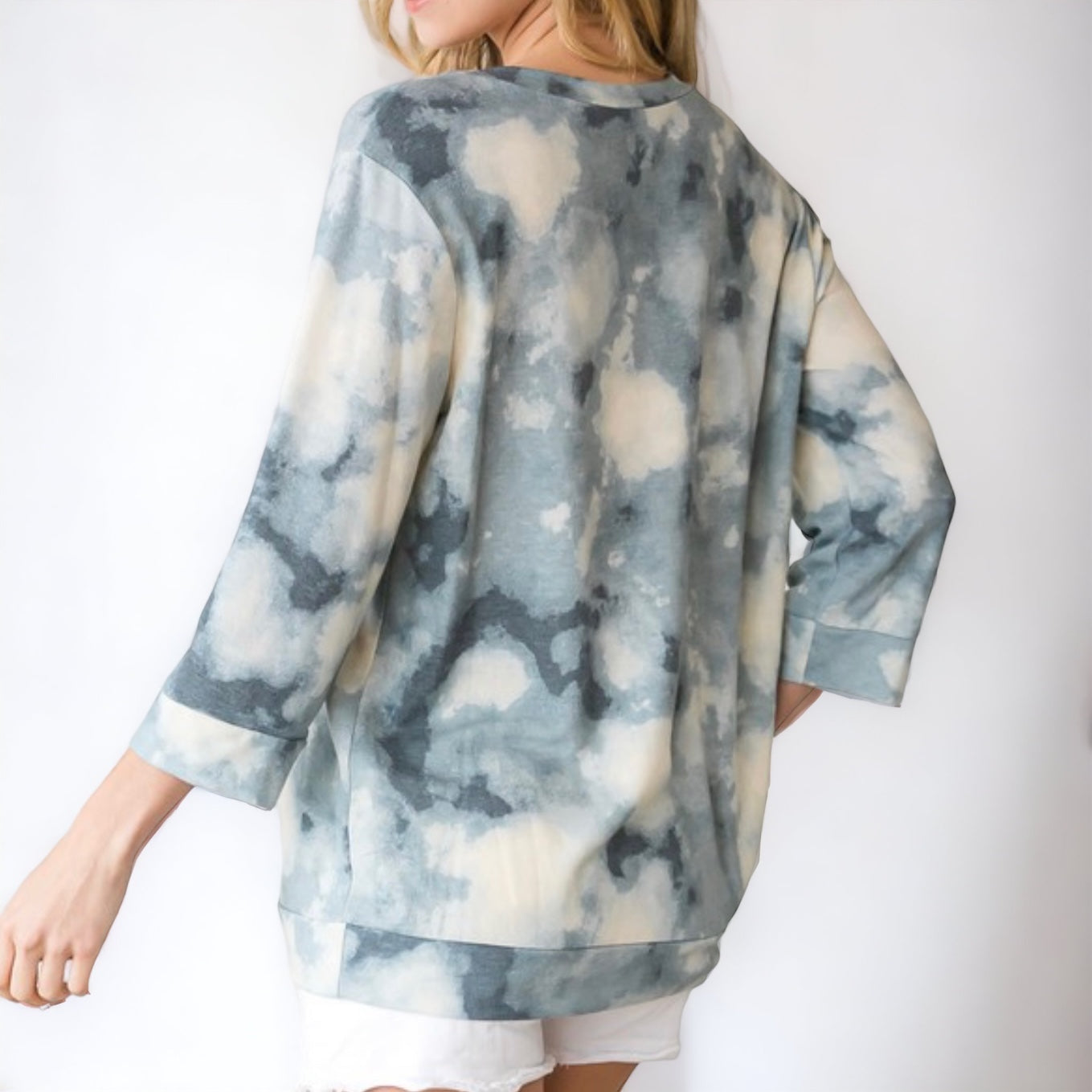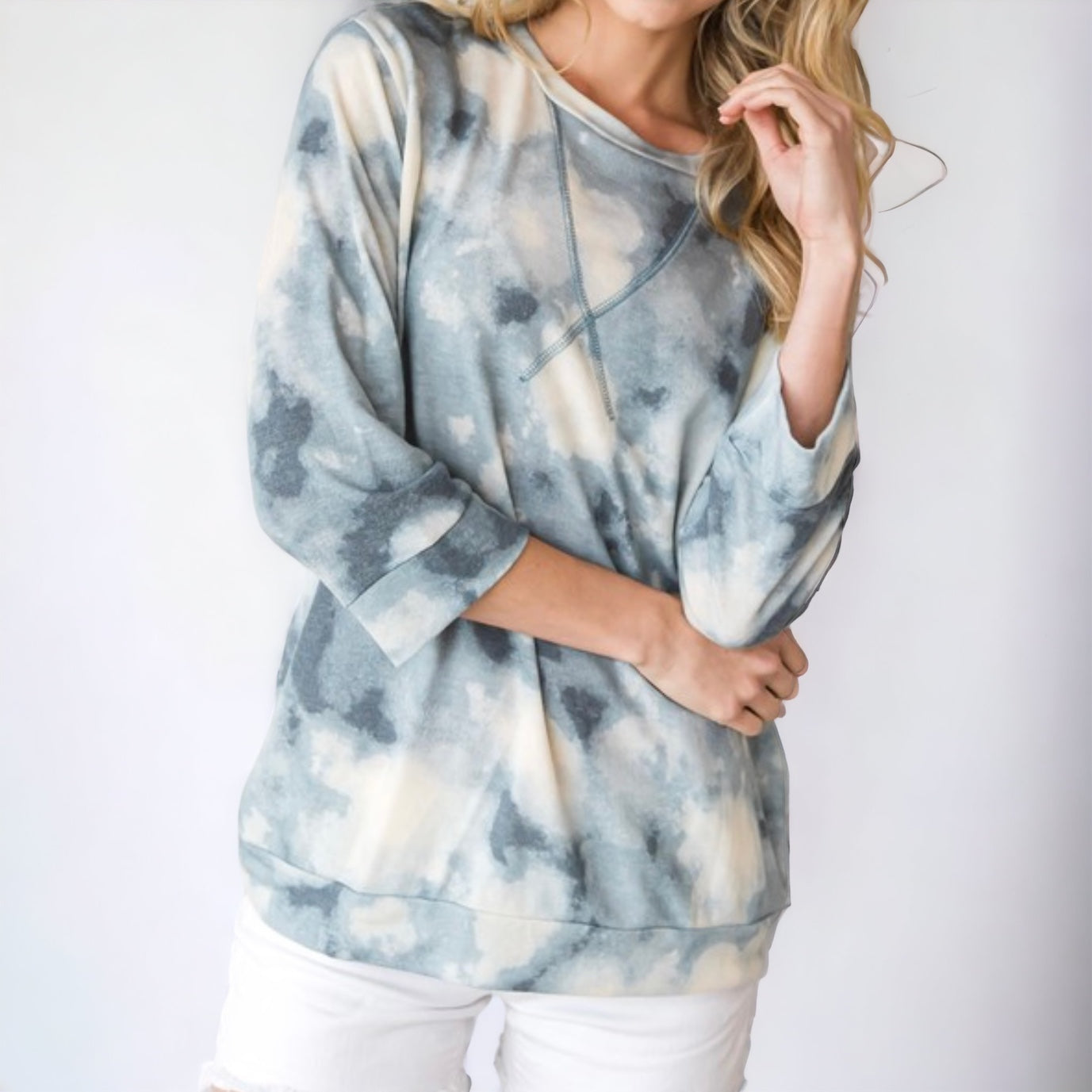 Our Tie Dye Triangle Stitch Top is the perfect addition to your spring or summer wardrobe—throw it on with some white denim jeans or shorts, sandals or wedges and you're ready to rock and roll! With its 3/4-sleeve and casual style, it's just street-smart enough to keep you looking cool and chill.