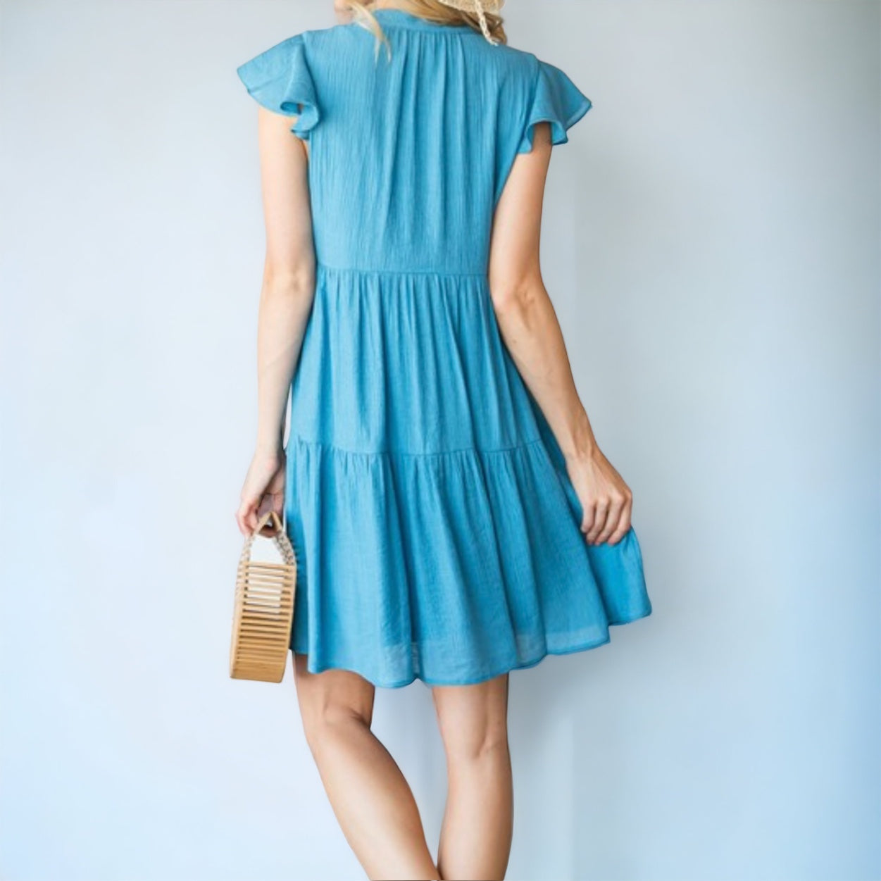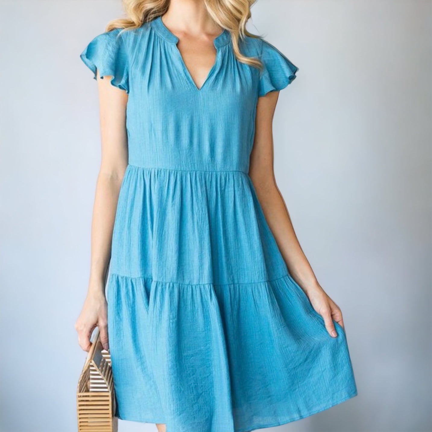 Make a statement in this lightweight tiered dress! Its solid color and tiered design is perfect for dressing up with sandals or wedges for an effortless look. Layer it with a jean jacket to create a look that's all your own!